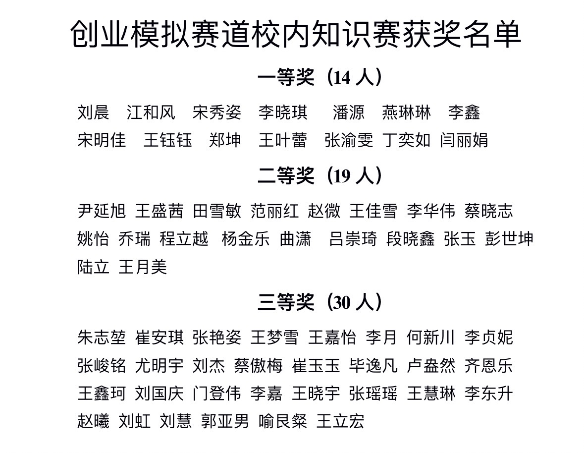 创业模拟赛道校内知识赛获奖名单