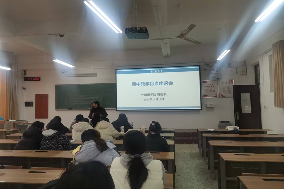 11月17日,必赢net线路检测英语系在教学楼C103召开了2022级、2023级和2024级英语各班级期中教学检查学生座谈会。英语系副主任左燕茹主持会议,英语系教师梁钢和各班学习委员及学生代表参会。师生围绕英语学科教学进行了深入交流。