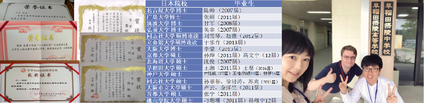 近年来,日语专业学生在海内外的各类技能比赛中多次获奖。考取日本著名高校的硕士博士层出不穷。建立了人才培养与应用的良性发展:“必赢net线路检测日语专业基础学习—>日本留学提高语言能力与学历水平à日本就职”例如:2016届的毕业生王磊通过前往同志社大学交换1年,顺利考取早稻田大学研究生,并以优异成绩取得日本富士通公司的就职内定。