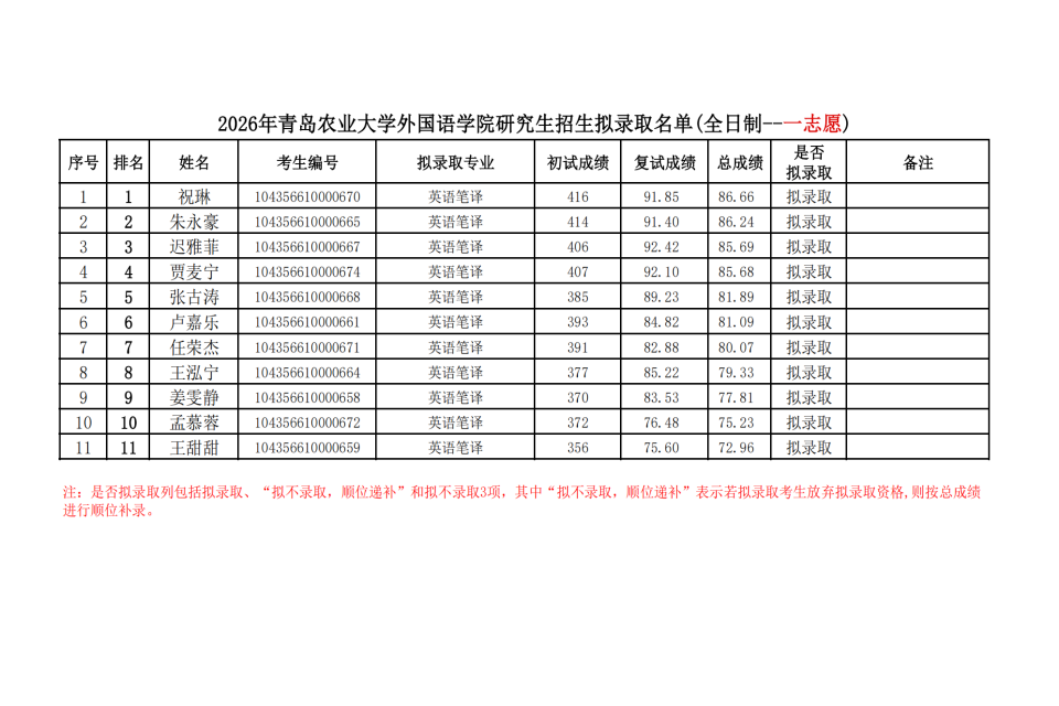 2026年必赢net线路检测必赢net线路检测研究生招生拟录取名单(全日制--一志愿)