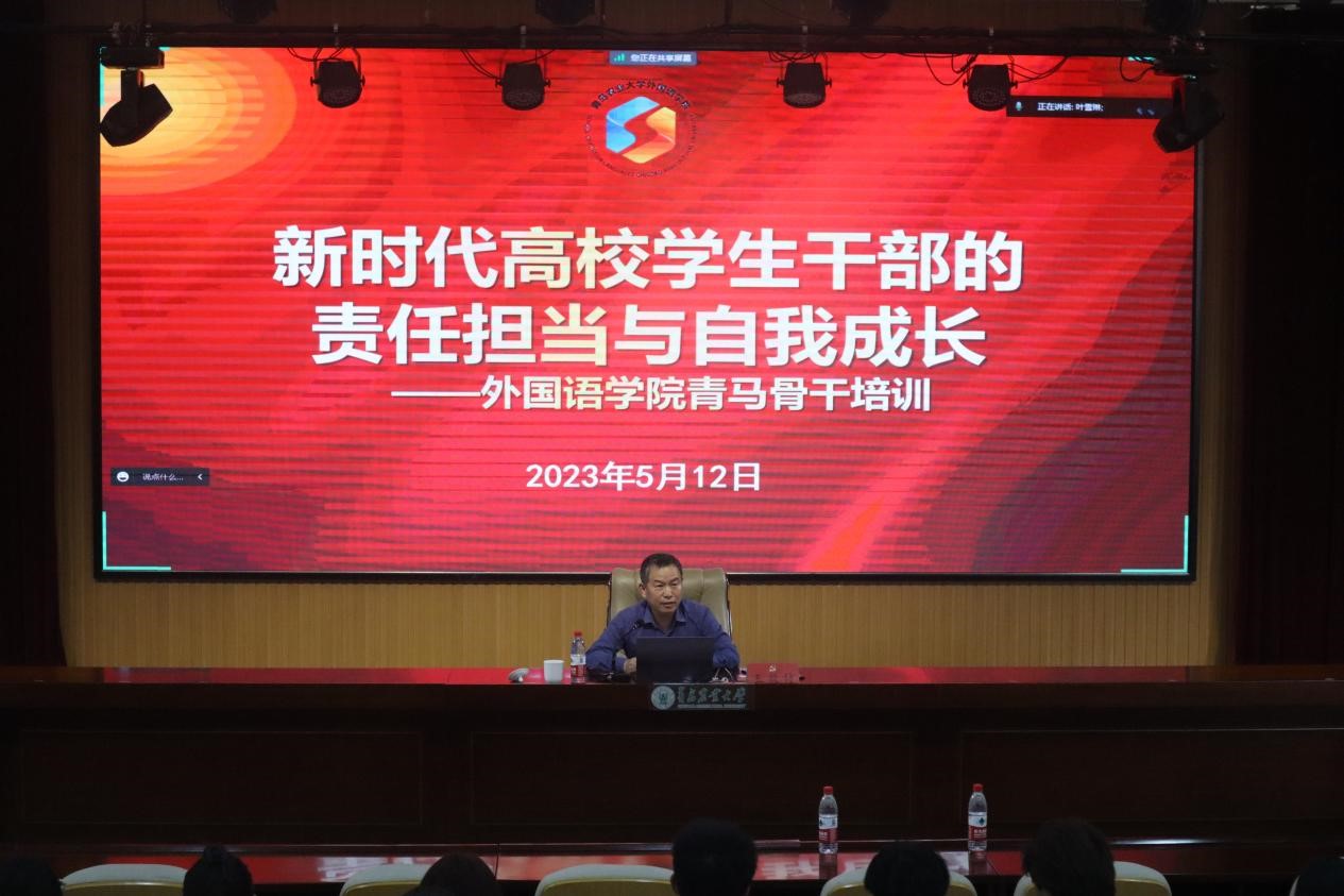 王效仿以《新时代高校学生干部的责任担当与自我成长》为主题,从发挥五大作用、树立五大理念、培养五种意识、处理好五大关系、形成五大学习习惯、塑造八大人格形象等六个方面进行详细指导。他表示,学生干部要在服务同学的过程中砺炼自我,在促进集体发展的过程中收获成功,做到“功劳不抢,过失不推”。王效仿结合自身经历,就学生干部如何科学处理上下级之间、同级之间、与老师之间的关系提出了方法和路径,为学生干部成长提供了积极引导作用。