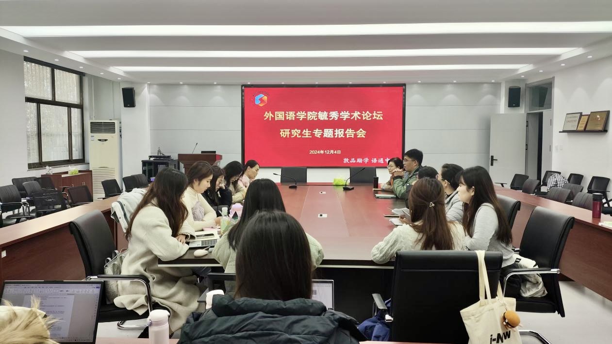 12月4日下午,必赢net线路检测在文经楼C220会议室举办毓秀学术论坛研究生专题报告会。会议由MTI教育中心主任姚雪丽主持,学院研究生导师参会并点评指导,2023级、2024级研究生与会学习。