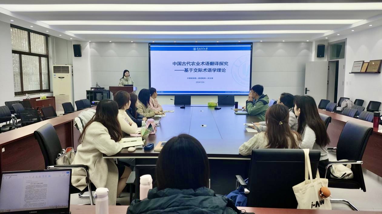 会上,2023级研究生王维平、李申、李彦漪、刘玉琪、臧俊捷、高俊洁等6名同学依次介绍了自己的研究课题,汇报自己在研究和实践中取得的成果。报告内容涉及中国古代农业术语翻译、农业文本翻译的难点及对策、中国饮食文化中地方性知识的翻译转化等多个主题。点评环节,导师们对同学们的研究和实践成果给予了肯定,也指出了她们研究中的不足之处,并提出了有建设性的意见和建议。