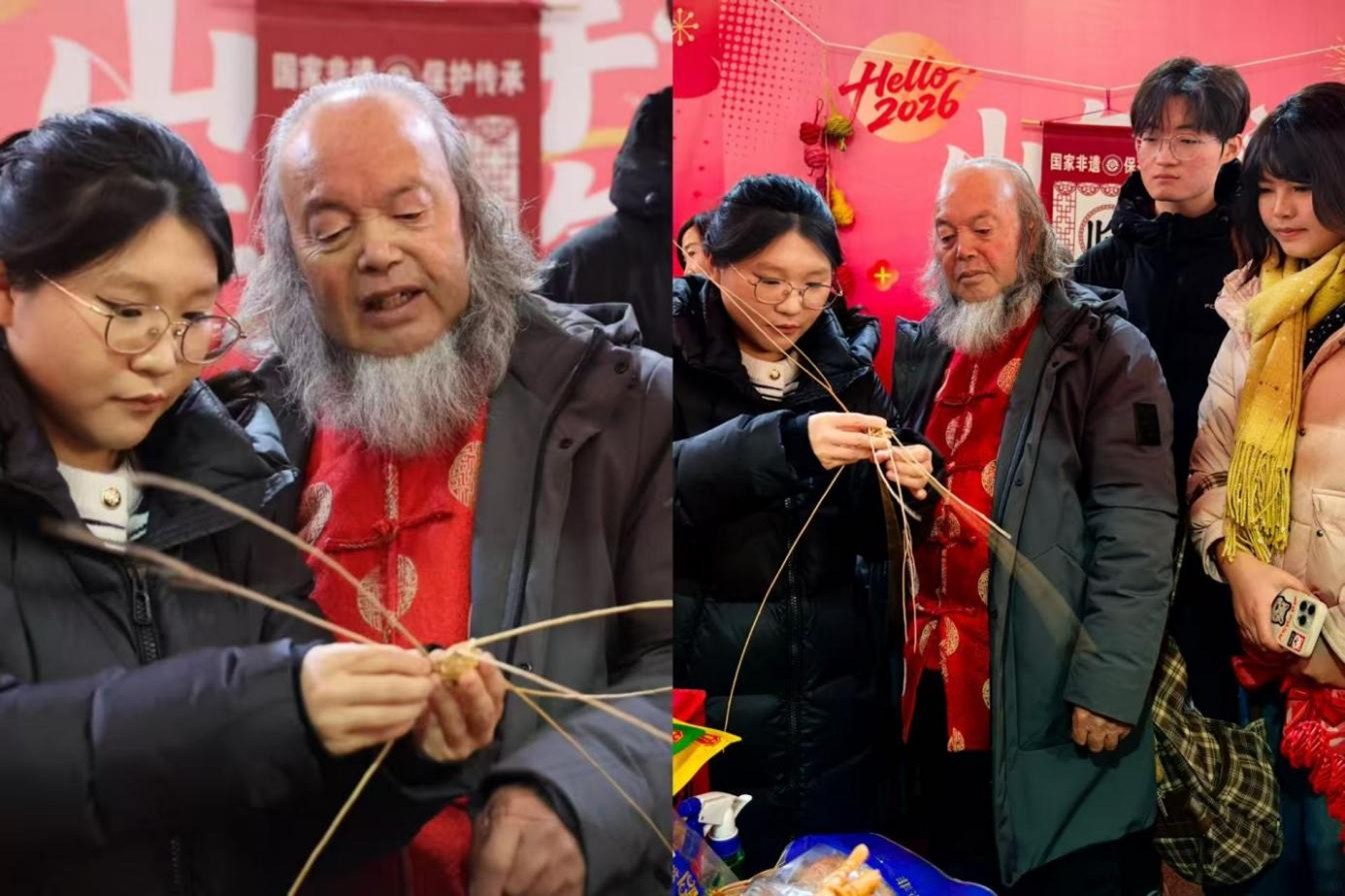 实践后期,团队成员前往临沂市人民广场参加临沂市数字文化体验月暨黄河大集新春季活动,深入了解沂蒙剪纸、郯城木版年画等十余项临沂非遗,理清不同项目的传承痛点与创新路径。遇外籍游客驻足,成员们以英语为桥,生动介绍柳编的文化脉络、剪纸的民俗内涵等,当海外友人感慨“这些手作里都是中国故事”,实践的价值也随之落地——从柳编的“一根柳条”到临沂非遗的“多元共生”。