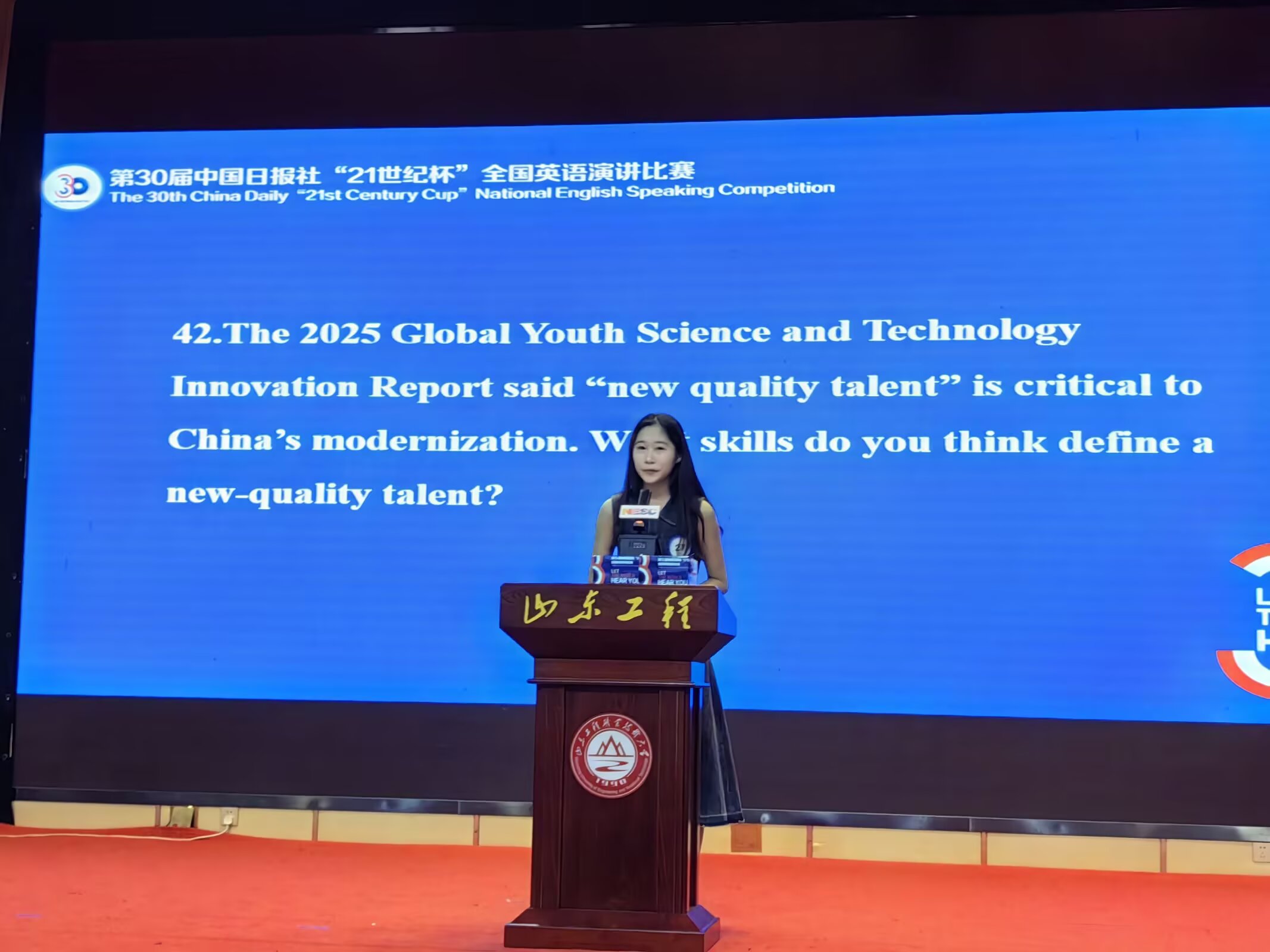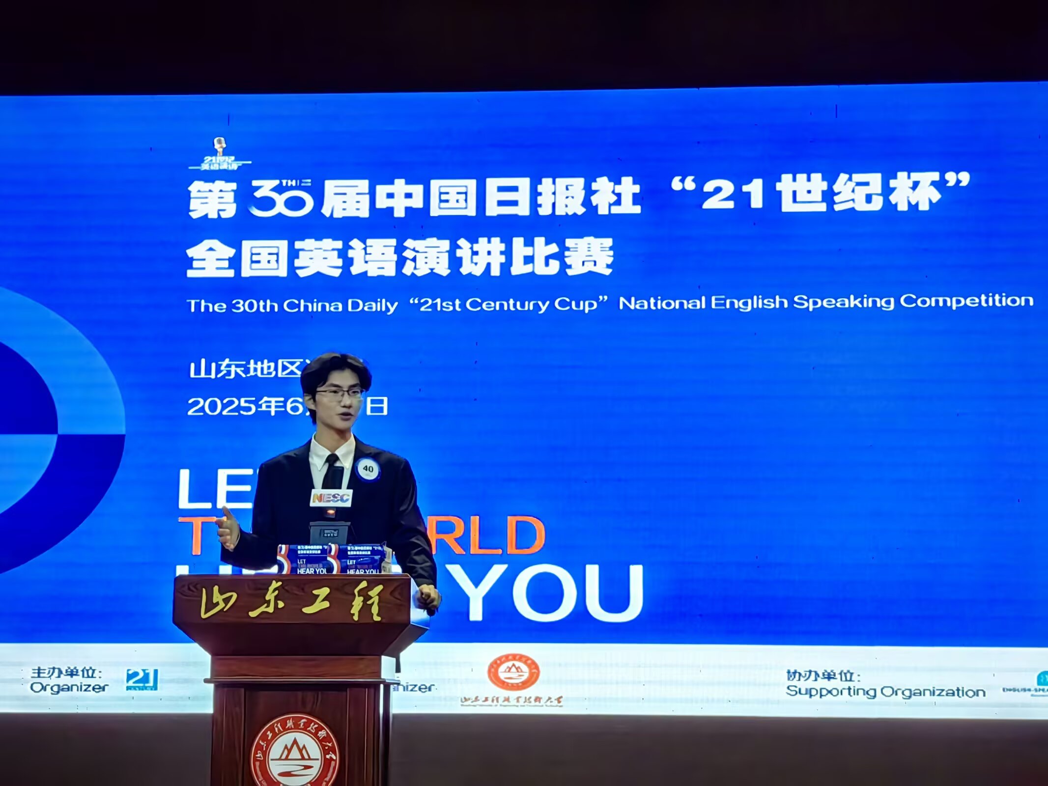 “21世纪杯”全国英语演讲比赛由中国日报社于1996年发起并主办,迄今已经成功举办29届,广泛吸引了全国各地的高校学生参与,得到了国家教育部和国际英语教学权威机构的高度评价和大力支持。为提高全国青年讲好中国故事的能力水平,加强国家国际传播能力建设、促进文明交流互鉴、推动构建人类命运共同体,凝聚青春力量,全省43名选手参加了此次山东地区决赛。